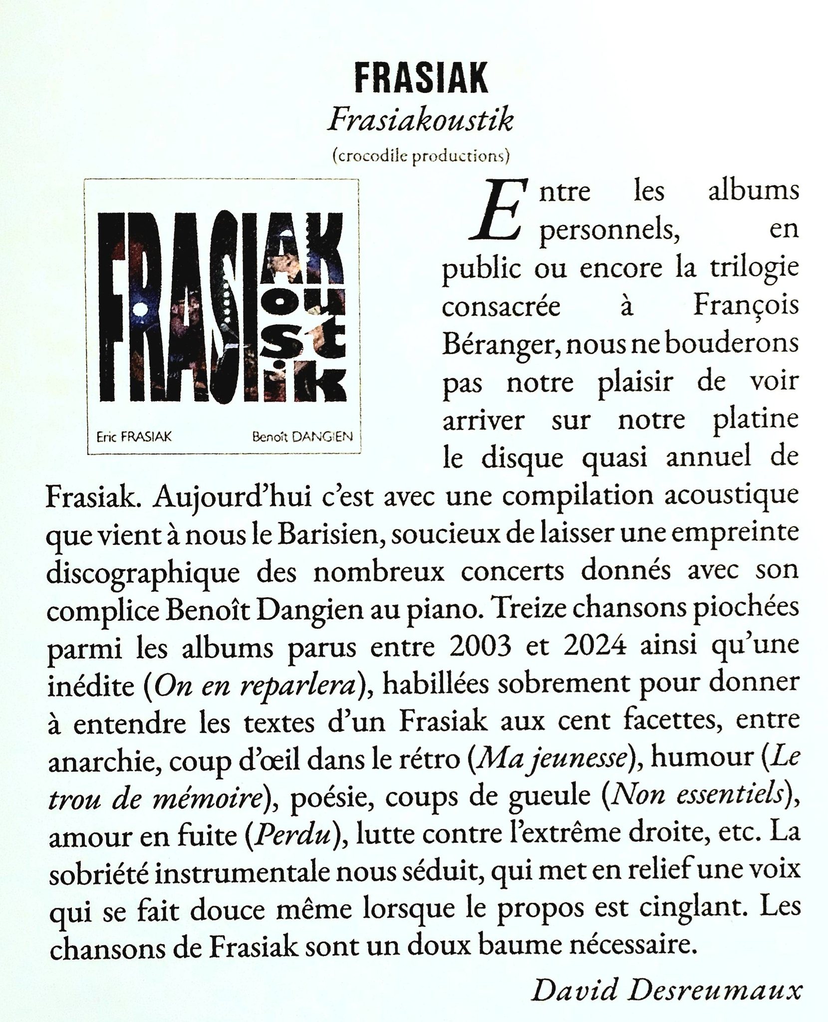 Chronique de R.F. MIGLIORINI dans LE PETIT FORMAT du CENTRE DE LA CHANSON (01/2010)
